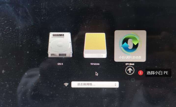 7、重启后开机再按住 Option 键不放,在这里就可以看到双启动菜单,选择windows系统进入。