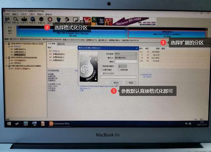 4、来到pe系统后,打开桌面上的分区工具(DiskGenius),把之前扩展的分区格式化处理。