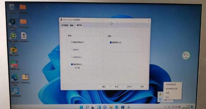 3、等驱动更新完成后,苹果触摸板和Windows右键可能无法使用,这时候再下载个WinRAR或者7-Zip工具,把苹果 Windows 驱动包解压出来,在 BootCamp 文件夹中找到 Setup.exe 直接默认安装即可。安装完成后直接重启电脑。重启后在右下角托盘中找到 Boot Camp 并打开,在触控板中勾选的辅助单击即可。这时候触摸板和右键菜单应该就可以正常使用了。
