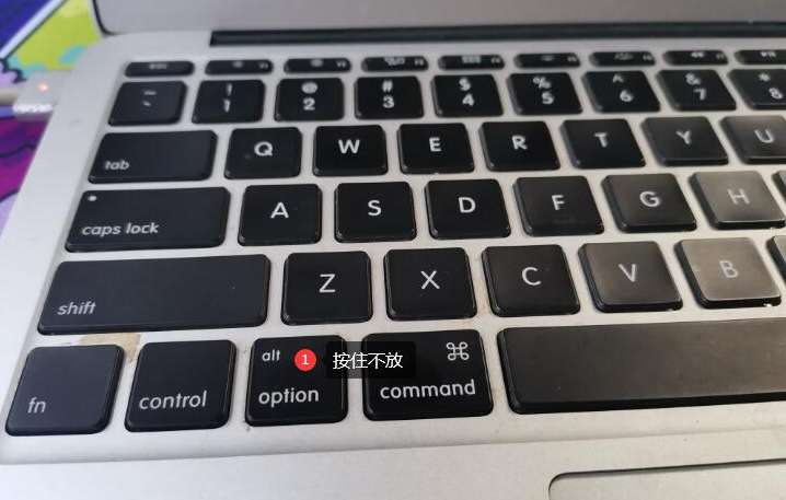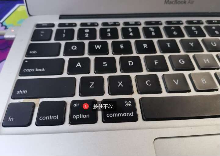 1、插上制作好的启动 U 盘,MacBook Air电脑开机的时候按住 Option 键不放,当出现苹果 Logo 时松开。