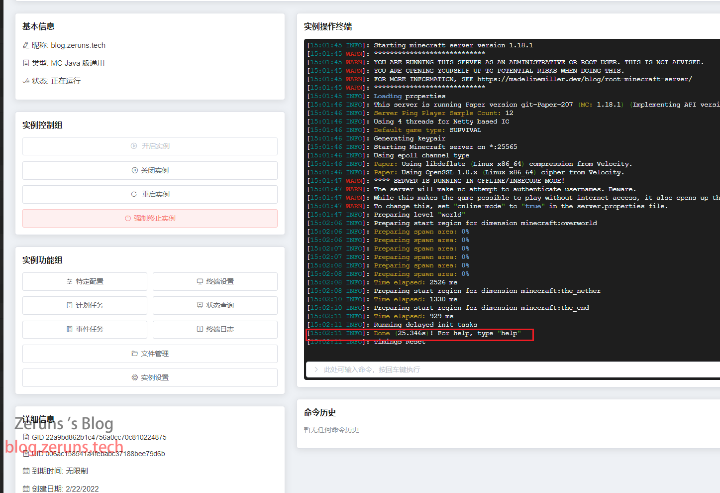 - 其他版本我的世界服务器搭建教程:https://blog.zeruns.tech/tag/mc/