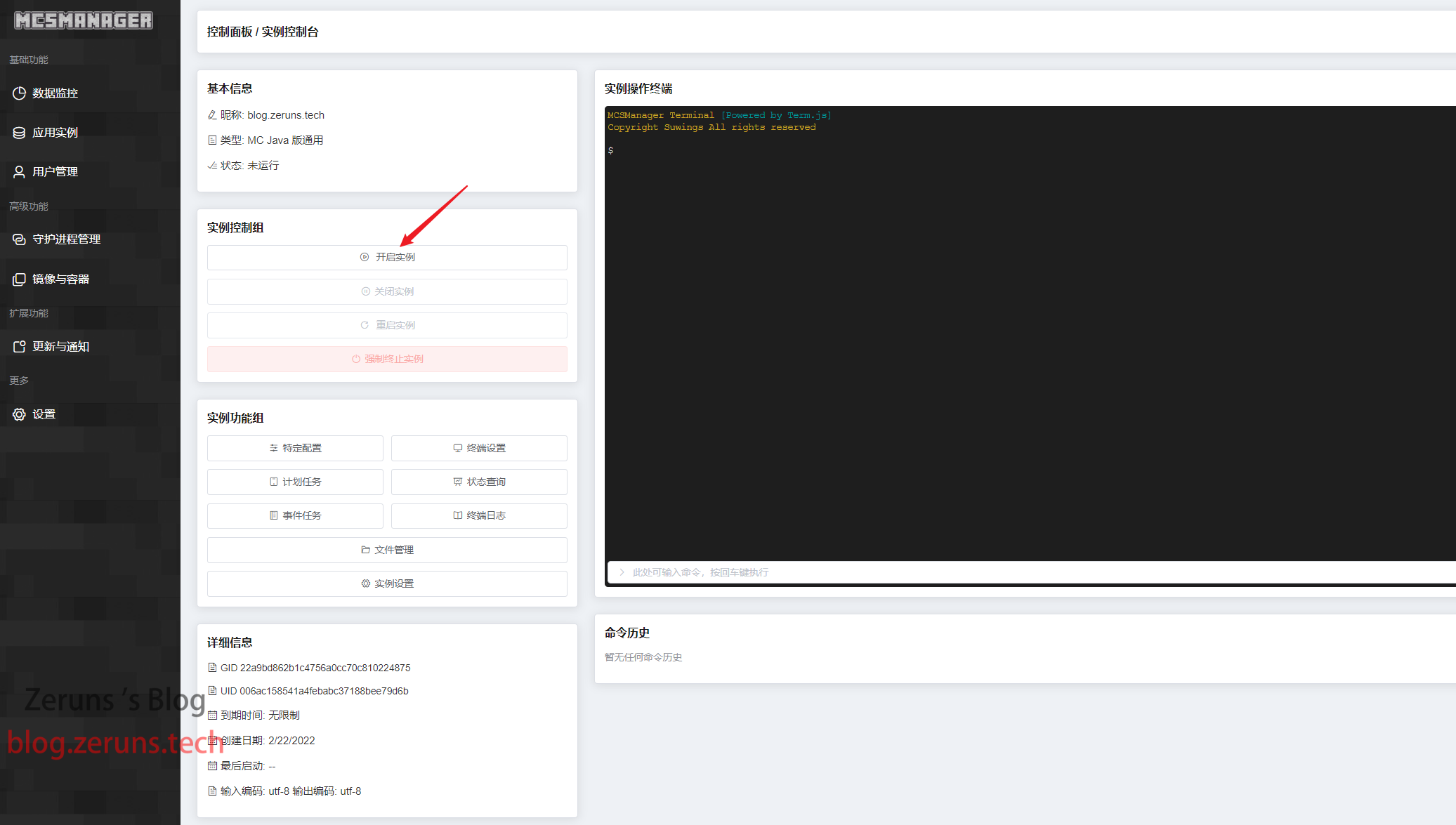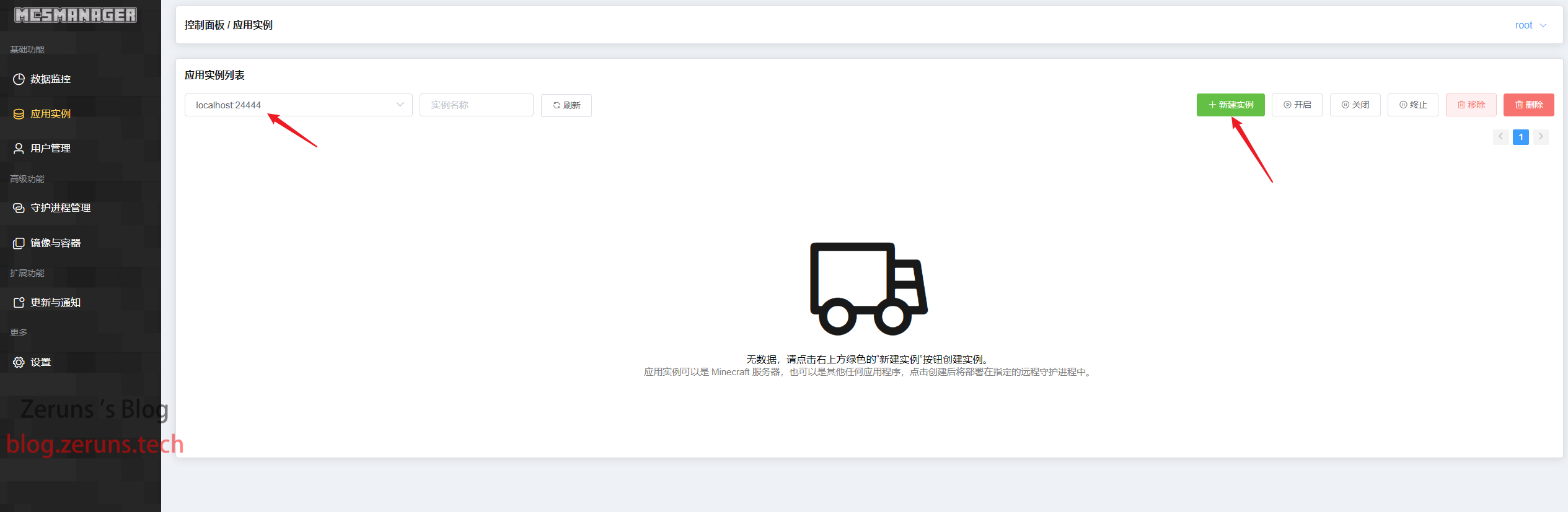systemctl start mcsm-{web,daemon}即可启动面板服务。 - 使用