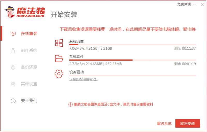 1、首先给电脑C盘文件进行备份,然后打开浏览器下载安装 魔法猪系统重装大师 软件并打开,选择我们要重装的系统。