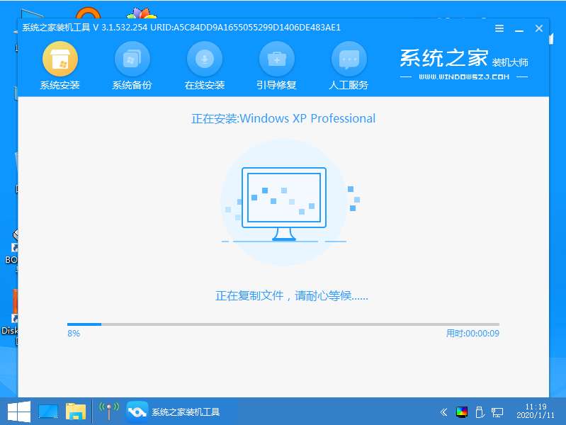 7、接下来我们会返回到pe界面继续进行安装,大家慢慢等待。