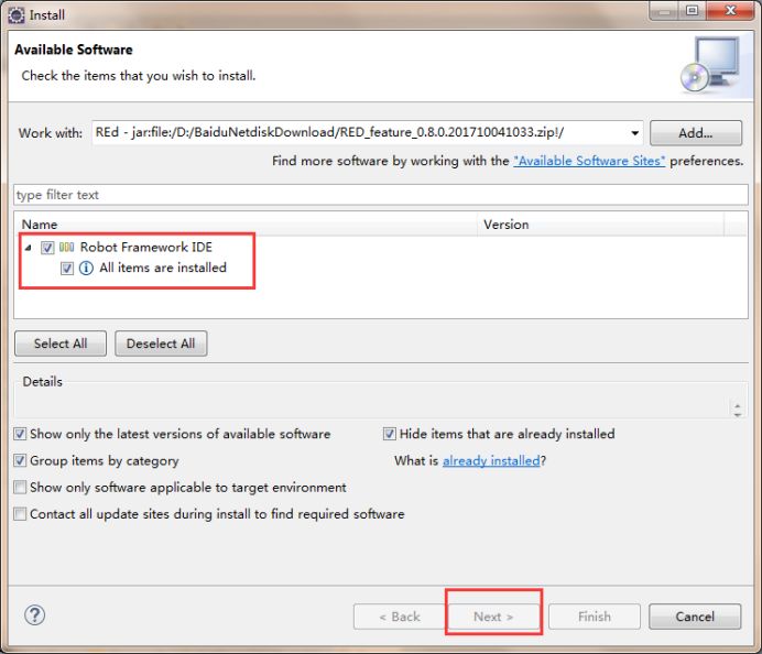 第三步:勾选 Robot Framework IDE. 点击Next.