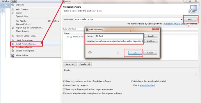 Eclipse页面中,Help - Install New Software - 点击Add添加。
