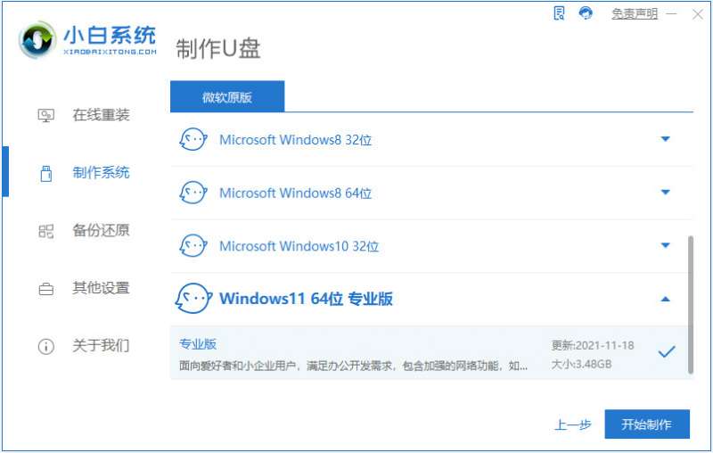 3.然后选择我们要安装的windows11系统,点击开始制作,就可以看到pe系统windows11已经被下载。