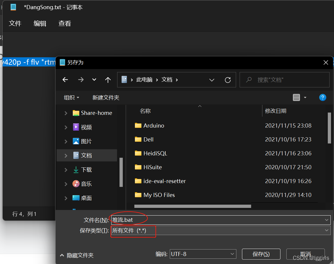 3.编辑bat文档,实现双击后直接推流。