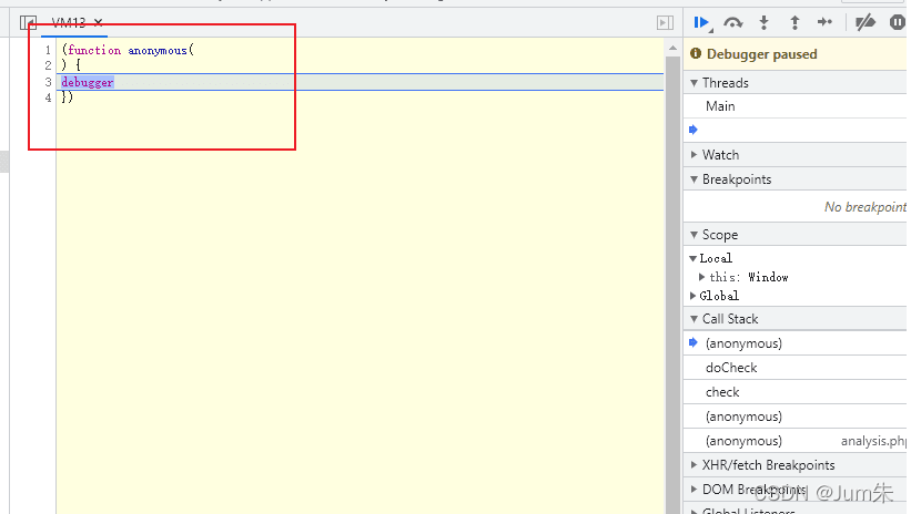 F12打开控制台后,会进入一个无限debugger,为了我们以后的调试,我们不得不将它消灭。