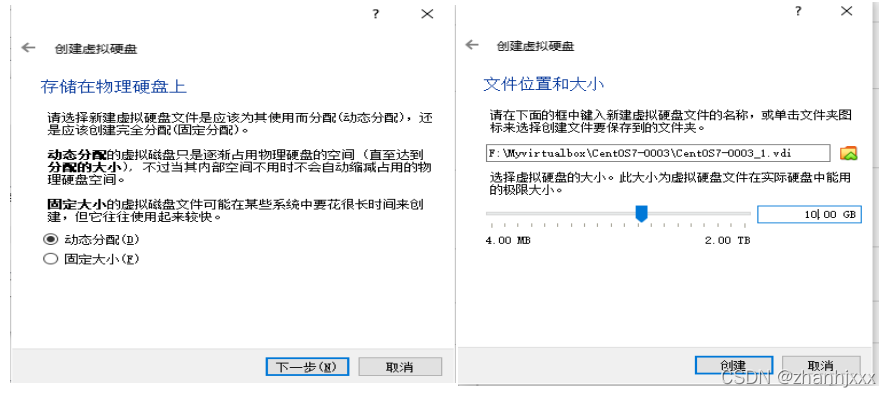 选择“动态分配”磁盘空间,只在需要的时候扩展物理磁盘空间,点击“下一步”,设置虚拟磁盘映像文件的路径以及大小,点击创建