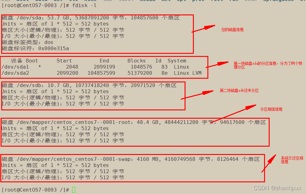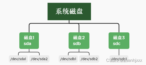 - 不同分区用:设备名称+分区号表示,如sda1,sda2等,物理设备/dev/sdb、物理分区/dev/sdb1