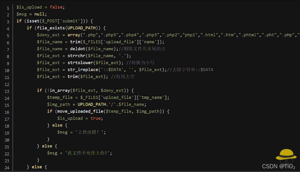 不允许上传,盲猜依旧是黑名单拦截,我们看一下源码