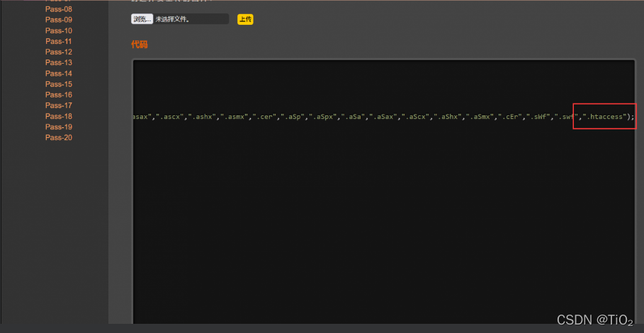 但几乎过滤了所有有问题的后缀名,除了.htaccess,于是首先上传一个.htaccess内容如下的文件: