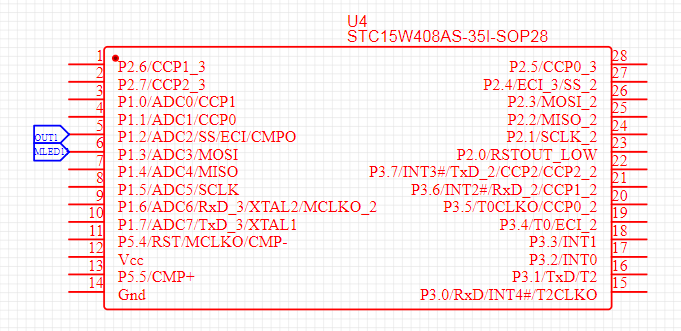 某个io口收到out1为0v的时候,代表光栅已经被阻挡,芯片的输出io口输出低电平。