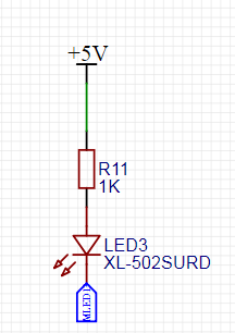如果光栅已经被阻挡,输出信号(mled1)是低电平,呢么这个电路里的led灯两端形成电位差,led灯亮起,提升光栅被挡。