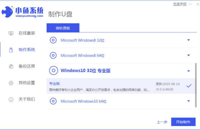 2、然后选择需要安装的win10系统,点击开始制作。