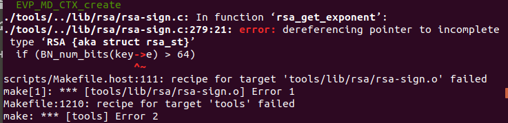 lib/rsa/rsa-sign.c:279:21: error: dereferencing pointer to incomplete type 'RSA {aka struct rsa_st}'