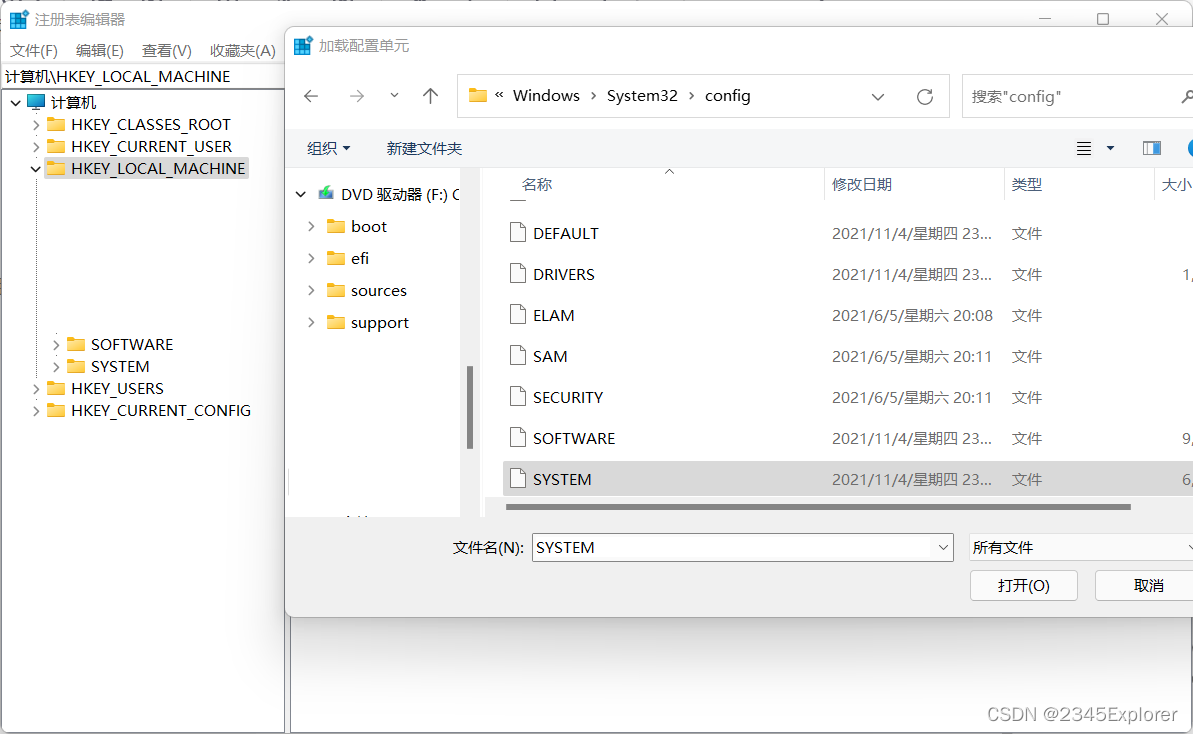 1.在HKLM加载<PE文件目录>WindowsSystem32configSYSTEM为SYS