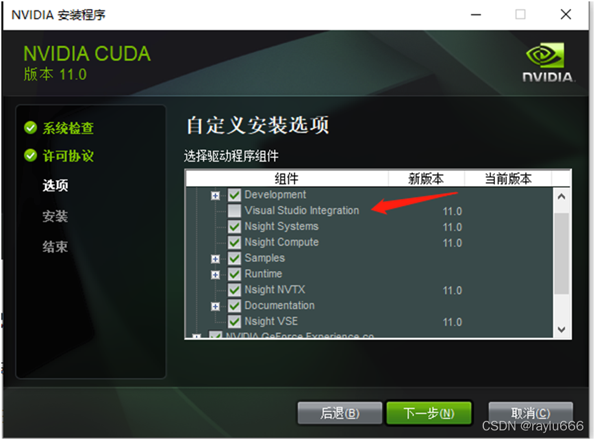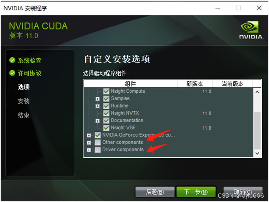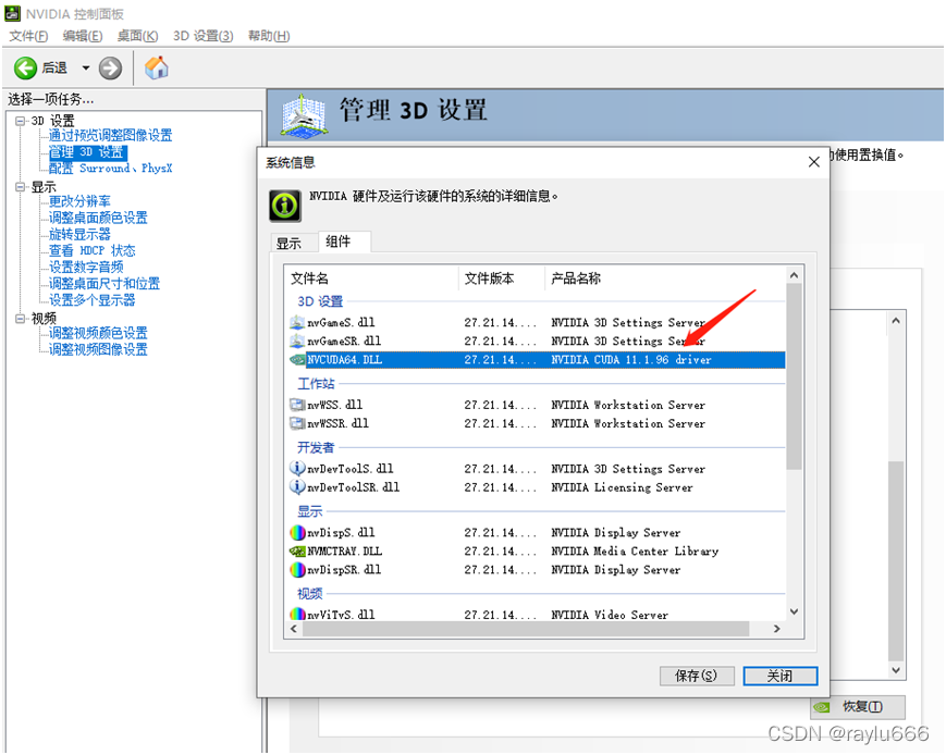 打开NVIDIA控制面板,选择 帮助->系统信息->组件,可以看到CUDA版本