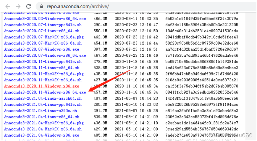 因为我要演奏Python3.8 和Anaconda 202020.11对应的 Anaconda 20200.11,即Anaconda 3-2020.11-Windows-x86_64。
