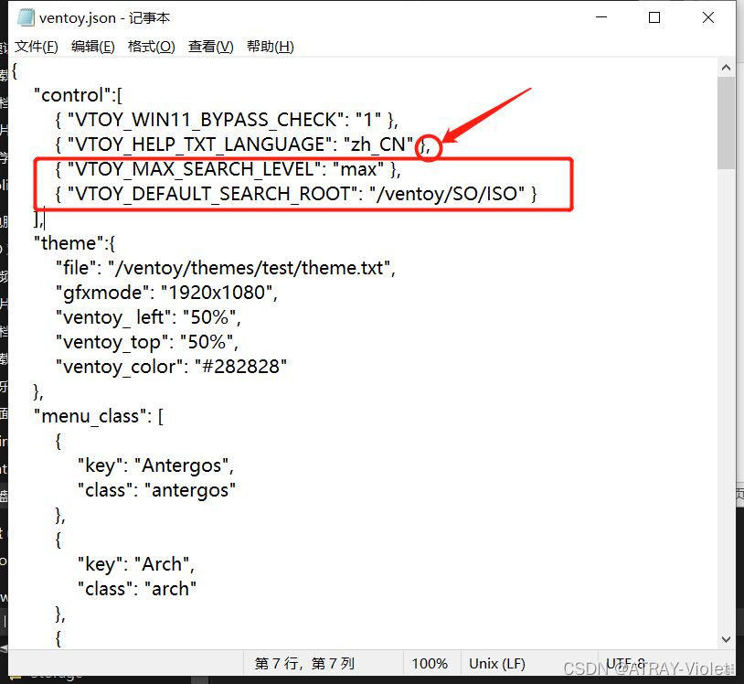 这是最关键的阶段。修改通风目录中的“ ventoy ” 。 此项目是叙利亚2011年抗议活动特别报导的一部分 。添加红框的两行,这里有一份镜像文件列表(有英文逗号):/文托伊/SO/ISO。保存关闭。请记住我的文托伊版本是1,
