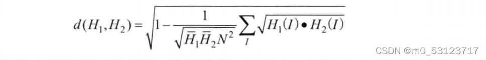 对于直方图来说,使用某些标准检查两个直方图之间的相似性的能力是一种必须具备的工具。为了比较两种直方图(如H和H),然后,必须选择直方图相似性(d(H,H2))的比较尺度。OnCV2.X in, X in, X in, X in, X in, X in, X in, X in, X in, X in, X in, X in, X in, X in, X in, X in, X in, X in, X in, X in, X in, X in, X in, X in, X in, X in, X in, X in, X in, X in, X in, X in, X in, X in, X in, X in, X in, X in, X in, X为了研究两种直方图的相似性,我们采用了比较高度方法。此函数的返回值为 d(H、H2)。