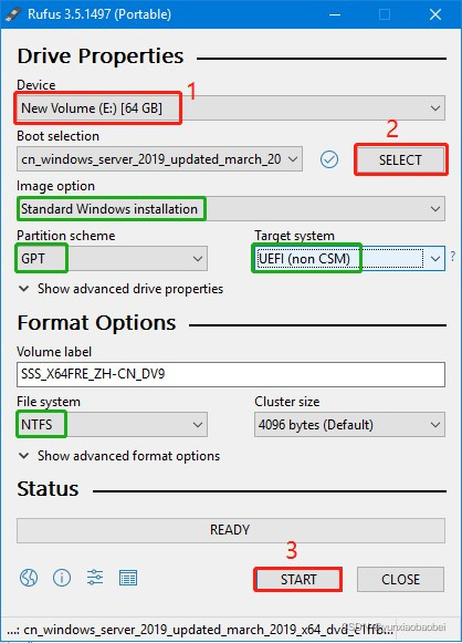 NB.1. 在创建百分数启动器时, 文件系统选择 FAT32 格式 。