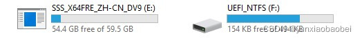 当 U 磁盘形成时, 它将被分隔成两个分区: 一个用于 EFI 启动 NTFS 分区, 一个用于安装文件存储。 不要删除任何文件或分区, 或者安装磁盘不会启动到 UEFI 模式 。