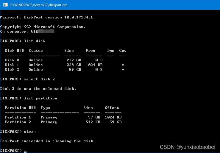 运行以下命令以启动 Diskpart 。