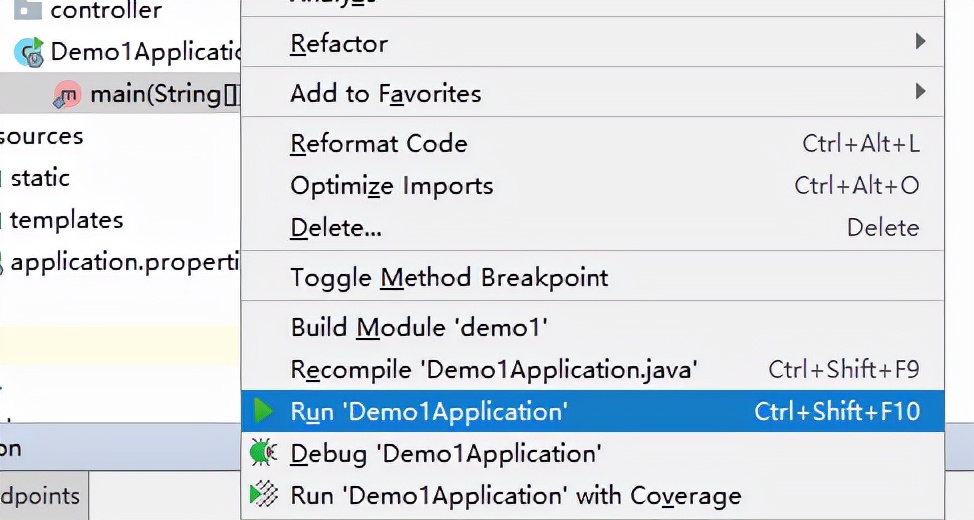在 Demo1Application 中执行主方法 。