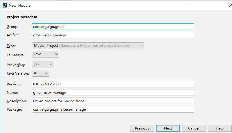 使用 GmallUser 管理应用程序向 Java 添加便条 。