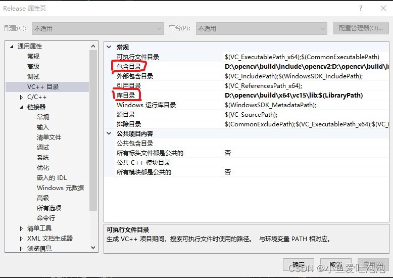 然后将xxxxopencvbuildx64vc15bin和xxxxopencvbuildx64vc15lib在路线上再增加两条路径。