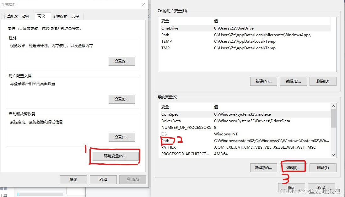 选择此电脑-->属性-->高级系统设置-->系统变量,找到path变量