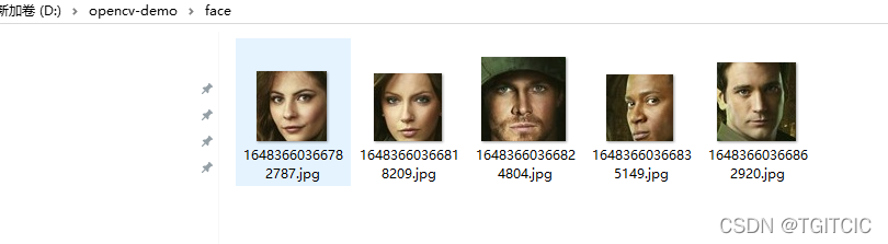 我们可以在D:Opencv-Demoface目录中收集五张人们的脸的照片,