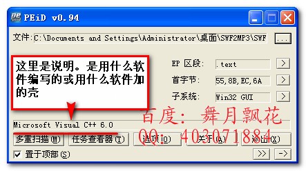 首先,你会想把SWF的英文版 拿到MP3转换器和PEID程序