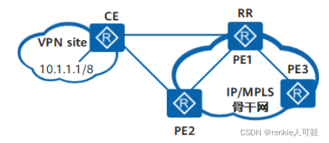 PE:服务供应商边际设备:它直接与CE连接,负责与CE交叉线路,发放VPN路线,处理VPN,以及所需设备性能。