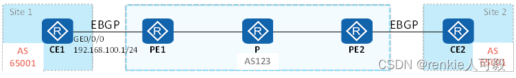 两个PE公司之间的线路是VPNv4,使用MP-BGP广播。