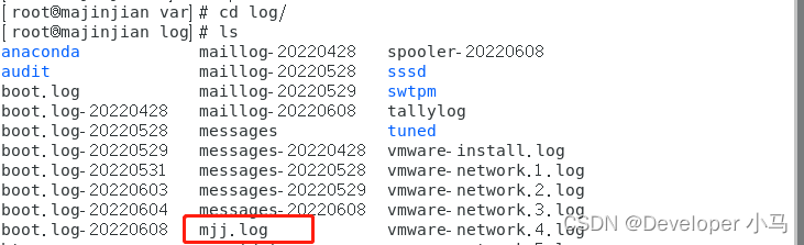 接下来使用命令reboot重新启动系统并再次查看mjj.log文件;