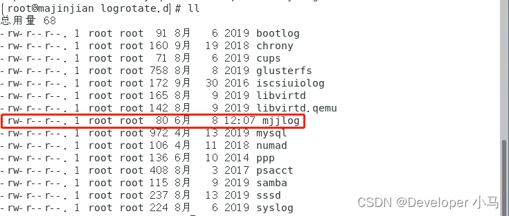 - 如果配置文件中没有dateext参数,则需要重新命名日志文件。当前的mjj日志在第一个日志旋转时将自动更改为mjj,然后创建新的mjj日志保存新的日志,当第二个日志翻转时,mjj.自动重新命名为mjj.2,当前的mjj日志被重新命名为mjj.1,然后创建一个新的mjj日志保存新的日志。