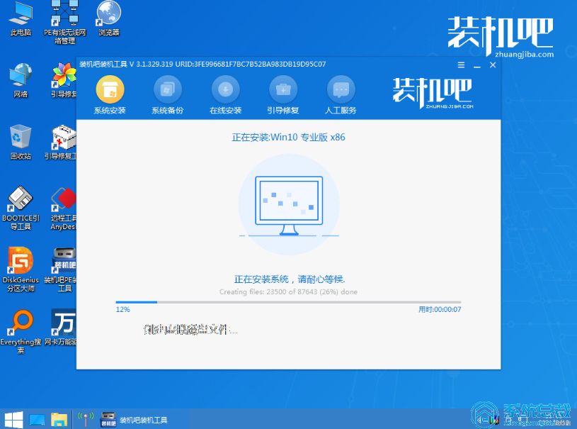 在 pe系统中, 系统总裁安装工具自动安装win10系统.