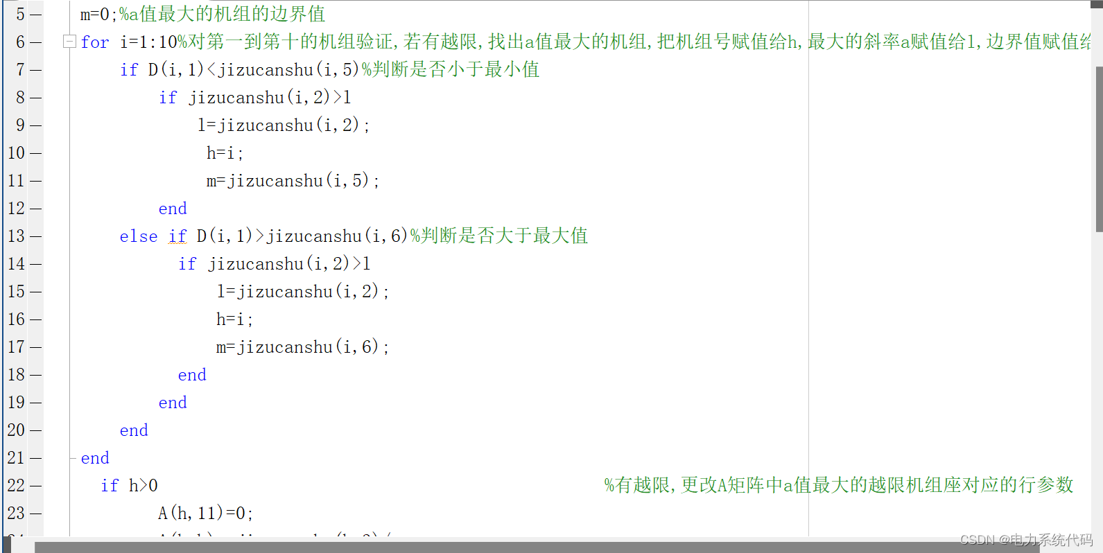 首先,需要假设一个初始边界电值c(less,这次是0.27)和步骤长度dc,然后根据P=(c-b)/a方程周期计算每个单位的输出P,因为每个单元都有最大和最小输出限度,因此,当输出超过限度时, 边界值是最大超过功率的.最后计算每个时间点的总功率t,以c=c+dc重新计算边界电压,以确定 t 是否符合变化时点的负荷功率要求,再次计算各功率,直到时间点的总功率满足负荷要求,最后,每个单位的功率在每个时间点显示为1至24小时,边界电和功率总和t.