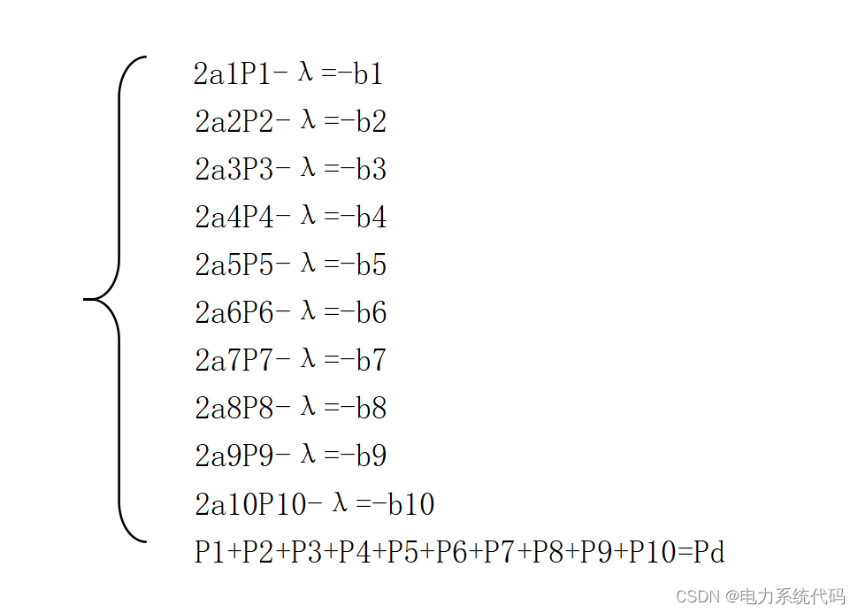 通过求解上述方程群,可以得到P1到P10的初步结果。但是由于每个发电机组都有最大和最小输出限度,因此,应核查上述初步结果,当1台越限时,使用它的边界值,而不是它的初始结果值,当有多台越限时,首先,判断这些优越机器的最大值,再取a值最大的机组使用它的边界值,而不是它的初始结果值,从上面可以看出,第一个验证一个或多个重置机的初始结果只改变一个重置组。因此,对改变初始结果值的优先机组的方程变为-bn*Pn/m=-bn。其中 m 是机器群的相应边界值,显然Pn即=m,其它方程不变,或11个方程解11个未知数,第二次得到结果,第3次......反复验证,直到所有发电机的功率完全达到最大输出和最低输出的限度,最后,计算出与每小时有关的所有单位的总消耗量,验证程序结束,最后在1-24小时内在每个时间点显示每个发电机的输出,平等消费边际增长和总消费.