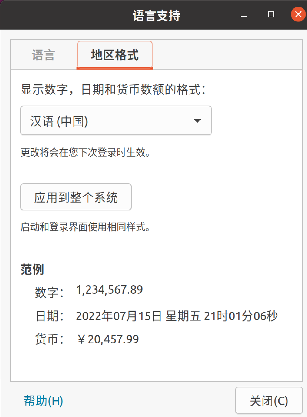 在语言中选择应用到整个系统如果您没有中文,请在您的语言中添加或删除中文。