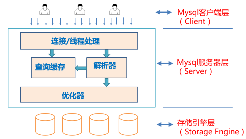 每个客户端连接在mysql服务端生成一个线程(通过线程库管理内部),例如,一个选定的句子进入,mysql首先将查看查询缓存,以查看此选择的结果是否被缓存,否则,继续分析、优化和执行过程,否则将从缓存中获取结果集。下面的图表显示了mysql的具体实现。