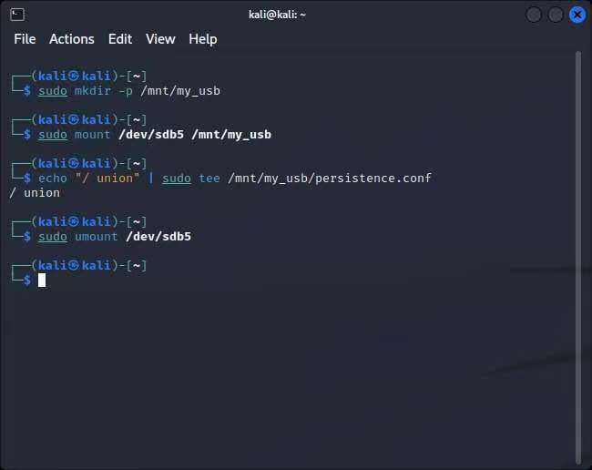 echo "/ union" | sudo tee /mnt/my_usb/persistence.conf