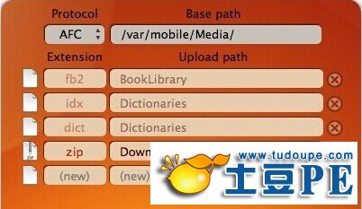 6、然后就会弹出一个窗口,第一次需要在里面添加文件类型(后缀名,不带点),第二次需要添加的是你要放置它的文件夹名。注意,因为iPhone操作系统的原因,现在还不支持中文。