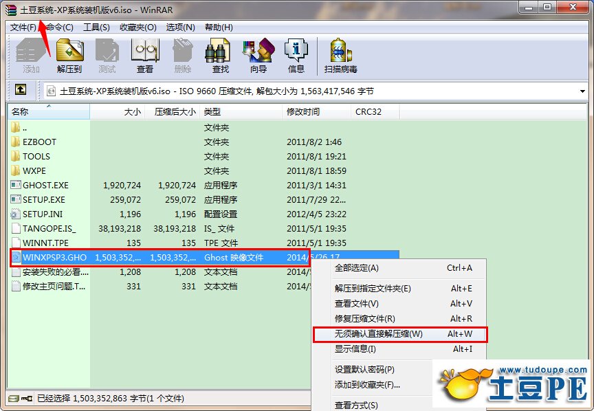 2、使用WinRAR工具对ISO包WIN7系统进行解压,可以将整个文件都解压,也可以单独将WIN7.GHO(3G以上的)解压出来,放到除了C盘的任意盘
