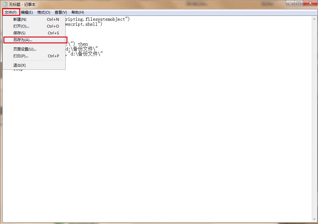 2、记事本内输入以下代码: