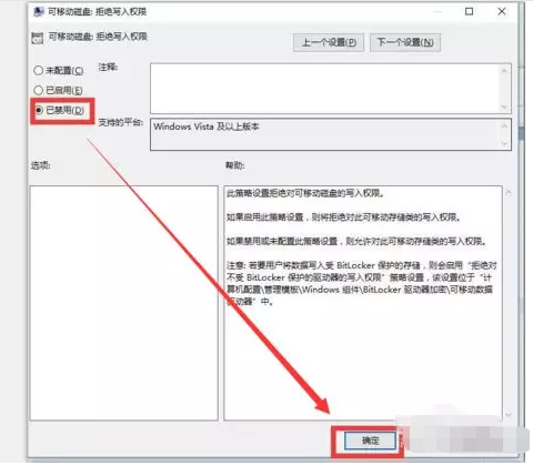 进入新界面,勾选已“启用”选项,就可以容许右派分子的一切正常读写能力操作。如果我们想严禁对U盘的载入操作时,只需勾选“已启用”选项就可以。
