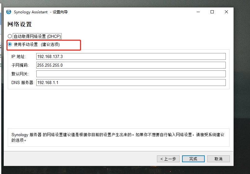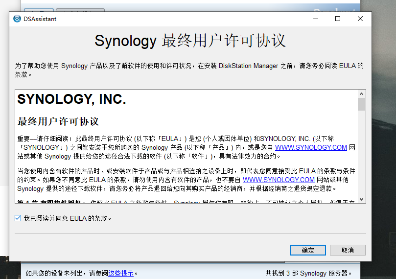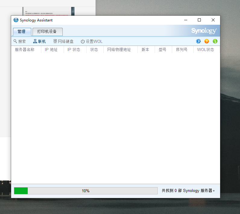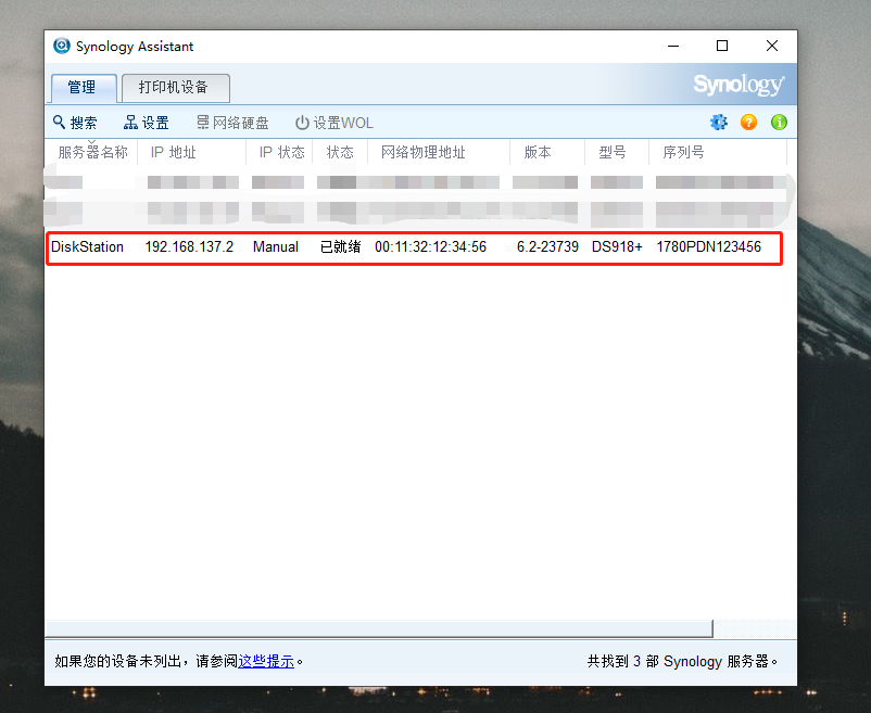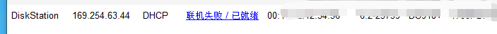 第二步:打开另一台电脑保持在同一局域网下,打开SynologyAssistant软件搜索群晖,会出现一个联网失败的主机。